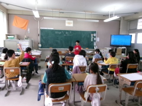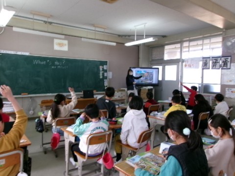 今日は,英語の歌の練習をした後は,「What's this?」の学習をしました。