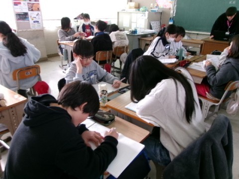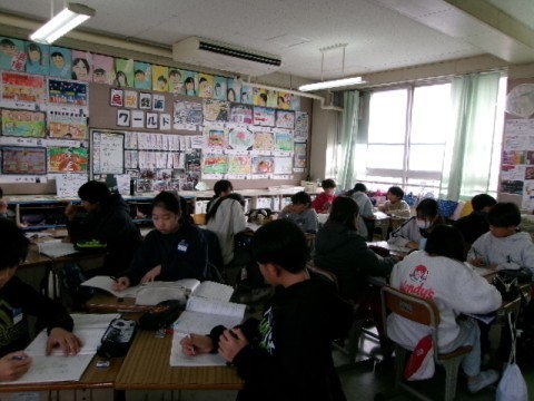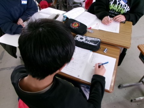 グループに分かれて相談し,今まで学習したことを思い出しながら,問題を解いていました。