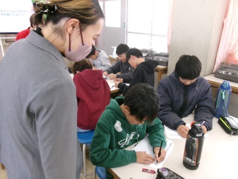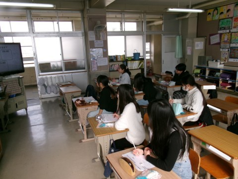 具体的には,「日本免疫粧研」「大阪いずみ市民生活協同組合」「大阪府作業療法士会」「NPO法人よりはうす」「東和薬品株式会社」の皆様に直接学校に来ていただき,それぞれブース(教室)に分かれて職業講話をしていただくというものです。今回のプログラムでいろいろなお話を聞いたり体験をしたりすることで,自分たちの将来の進路や仕事に対する具体的なイメージを,これまで以上に持つことができたように思います。そして,自分たちがこれから何をしていけばよいかということに対して,いろいろな面で参考にしてもらえたらと願っています。