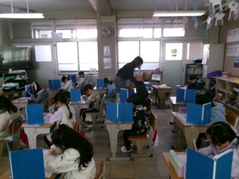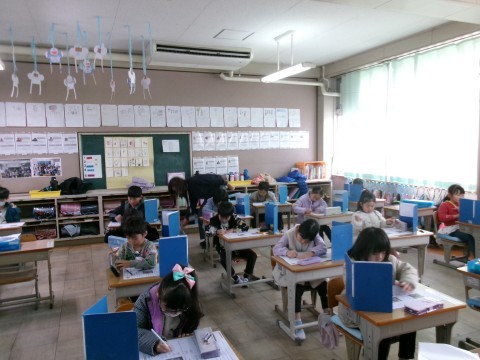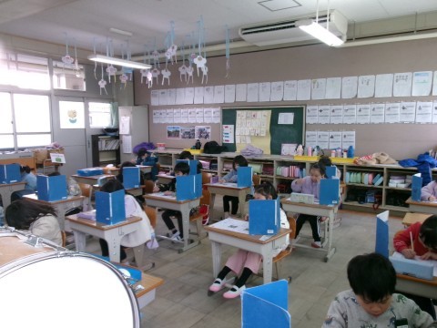 「どうぶつの赤ちゃん」という単元のテストをしていました。みんな集中して取り組んでいます。