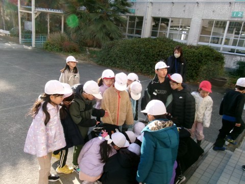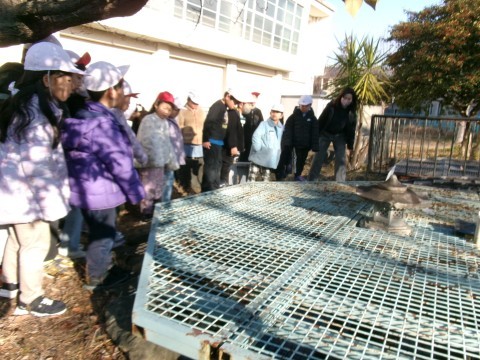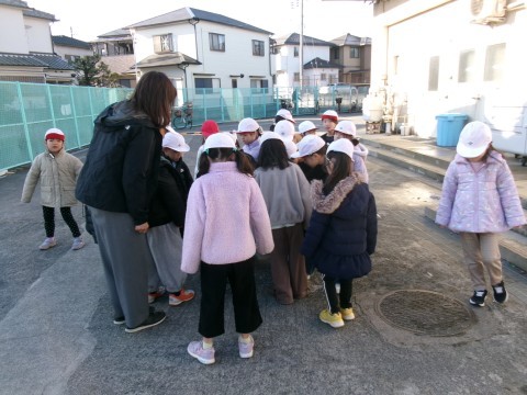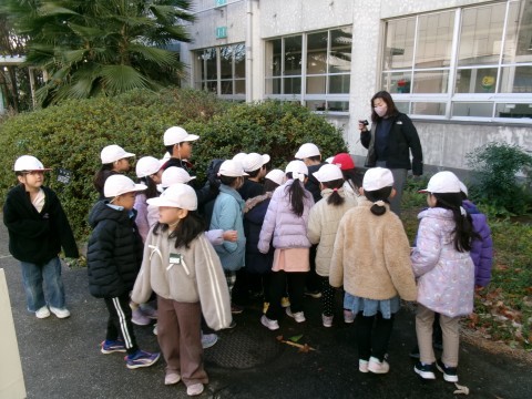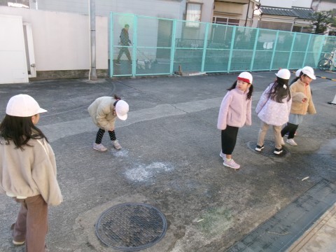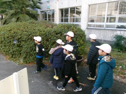 今朝はとても寒い朝でした。氷が張っている場所もありました。そこで,クラス全員で氷を探しに教室から外に出ていきました。