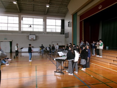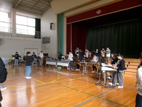 卒業コンサートに向けて,体育館で練習を始めています。今日は,お互いのクラスの演奏を聴き合っていました♪