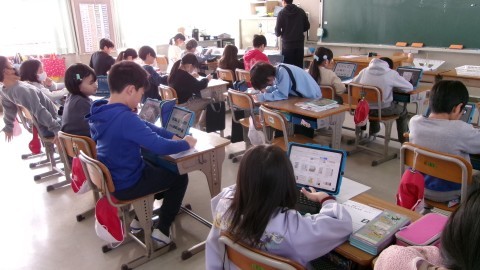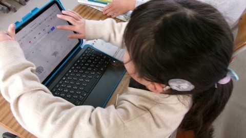 パソコンで調べてデザインの参考にしたり,友だちと相談したりと,意欲的に取り組んでいます。
