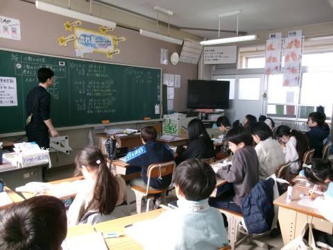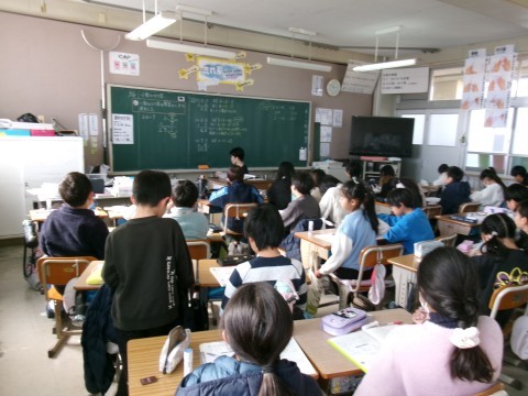 小数のかけ算の筆算のやり方を学習していました。小数第一位が0になり,小数点と0を消すところがポイントです。発表する時にみんなに伝わるように,やり方をきちんと言葉で説明していました!