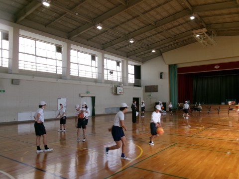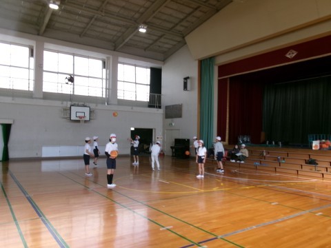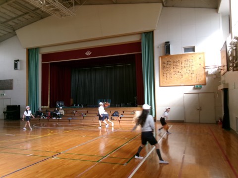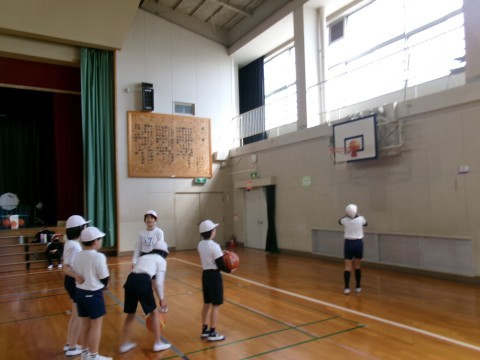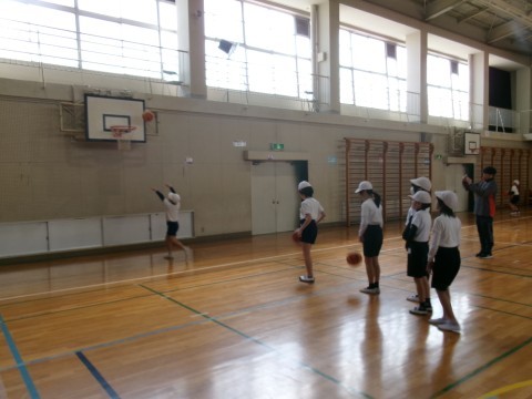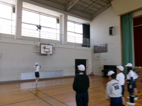 どちらのクラスもバスケットボールの練習をしていました。ドリブルでシュートしたり,2人組になってのシュート練習などです。なかなか上手にパスをしたりシュートをしたりしていました。