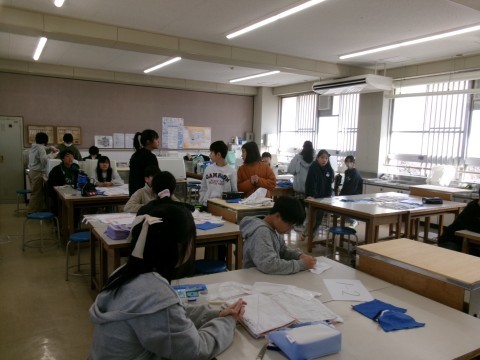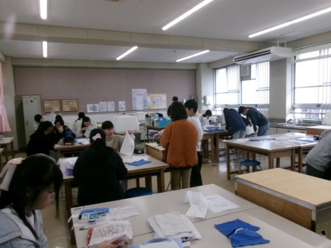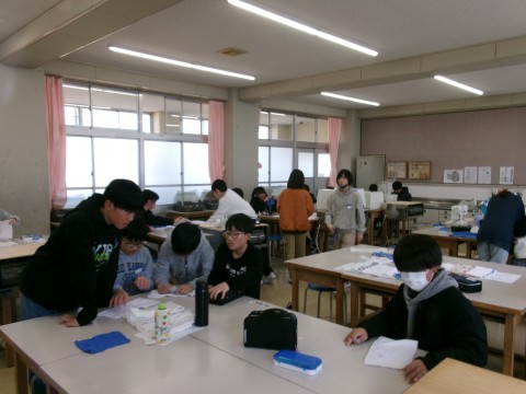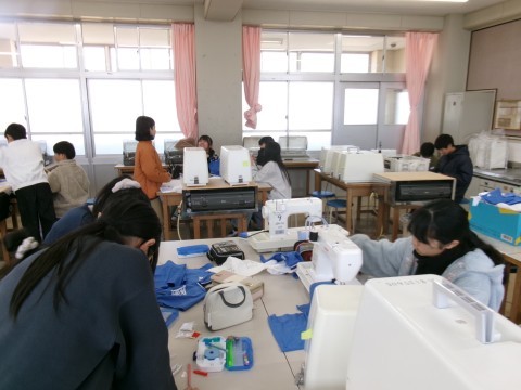 卒業する記念に各教室等にプレゼントする雑巾を縫っています。あと1時間か2時間で全部仕上がります。細部まで気をつけながら仕上げていました。