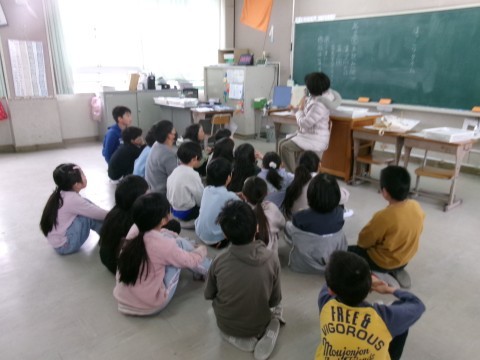 3年生の読み聞かせの様子です。いつもいろいろな本を選んでくださるので,3年生も静かに集中して聴くことができていました。