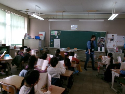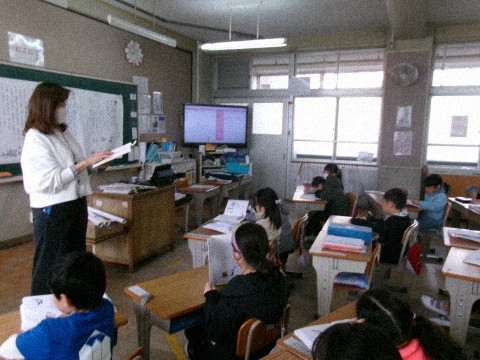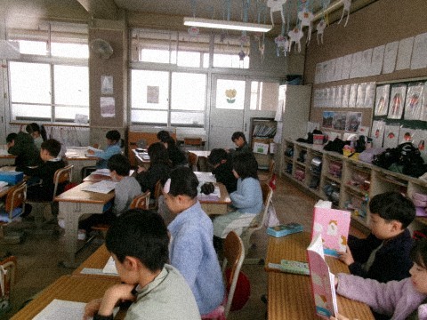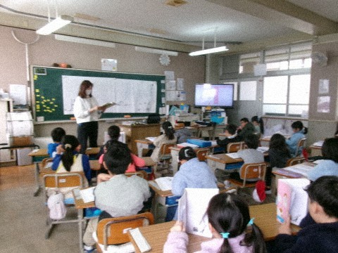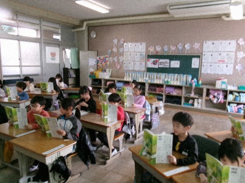 どちらのクラスも「ずうっと ずっと 大すきだよ」という物語文の学習をしていました。全員で一斉に読んだり,一人ひとりで順番に読んだりしていました。