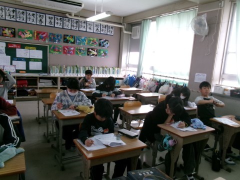 どちらのクラスも,5年生のまとめのプリント集に挑戦していました。みんな一生懸命取り組んでいます!