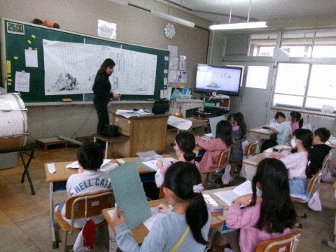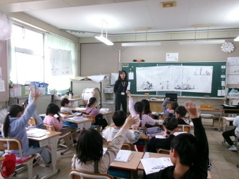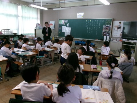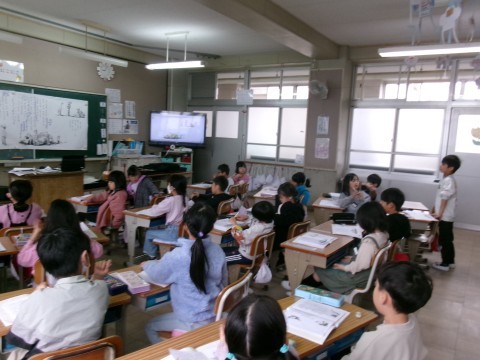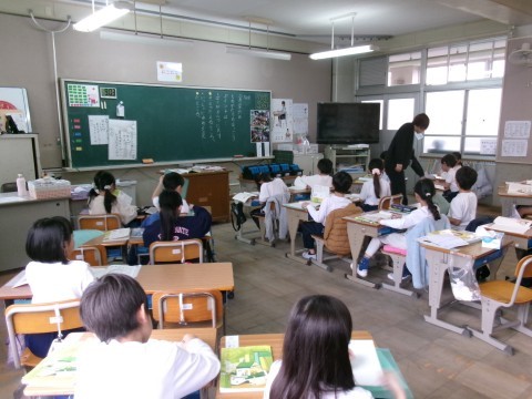 どちらのクラスも「ずうっと ずっと 大すきだよ」という物語文の学習をしていました。全体の話の内容の確認から始めて,各場面の大まかな内容の把握や主人公の気持ちについて意見を出し合っていました。