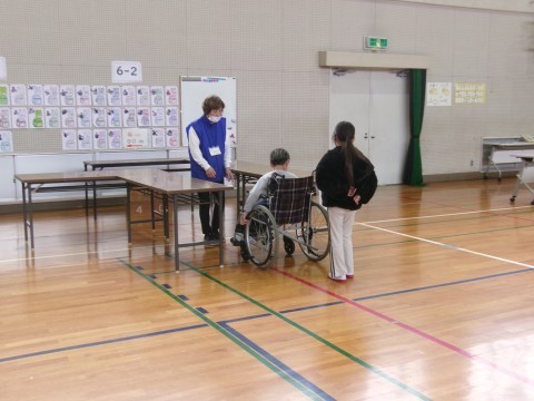 車いすや白杖を実際に使用したり,バリアフリーに関するお話を聞いたりしました。