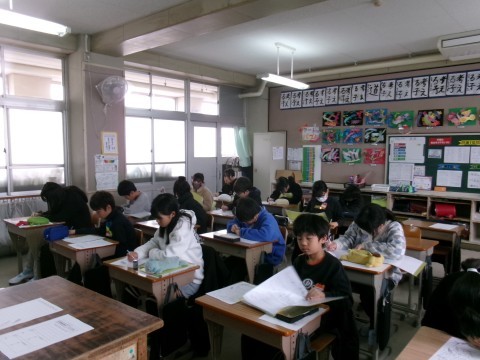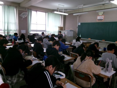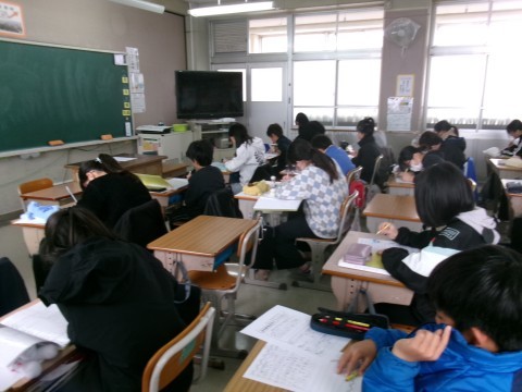 キャリアパスポート(年度末に作成する1年の振り返りや将来の夢等)の記入をしていました。