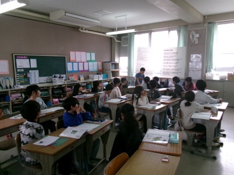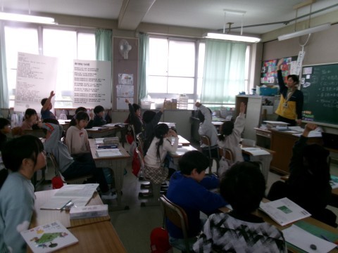 「箱の形をしらべよう」という教材の学習をしていました。今日は,いろいろな箱をTV画面で提示して,気づいたことを交流していました。