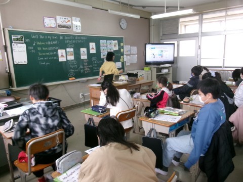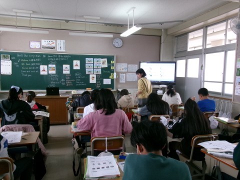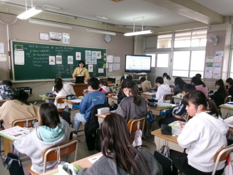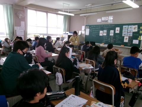 ヒアリングの練習をしていました。聞き取った単語の最初の文字をワークシートに書いたり選んだりしています。明日はヒアリングのテストがあるそうです!