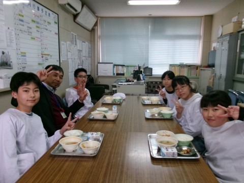今日も,6年生と給食を食べました。今日は,いろいろとユニークな質問に答えた後,「しりとり」をして遊びました。久しぶりの「しりとり」でした!