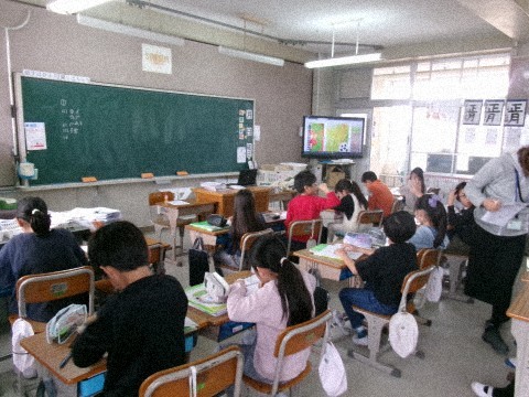 どちらのクラスも,今年1年間に学習した内容の復習をしていました。プリントのまとめの問題を解いて,その解説をしています。次回でまとめテストを行う予定です。