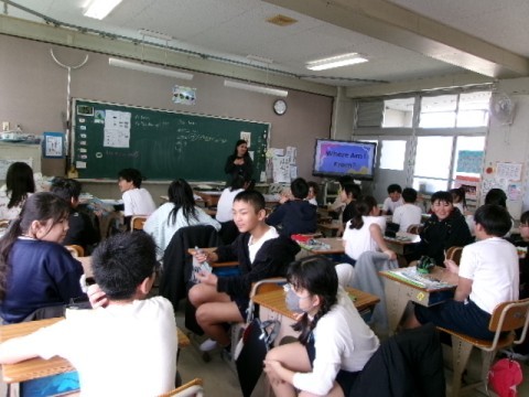 みんなでNSの先生に質問をして,クイズ形式で先生がどこの国から来られたのかを考えました。