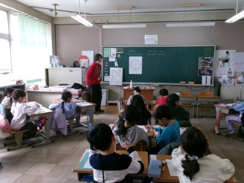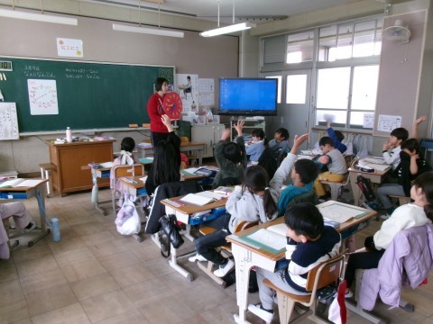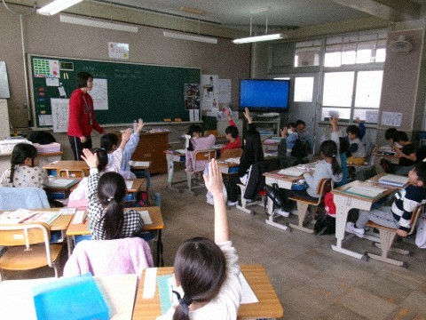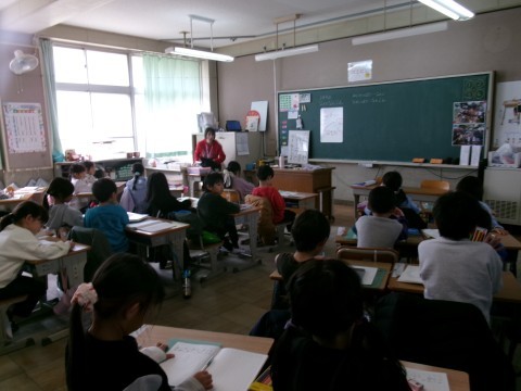 時計の読み方の学習をしていました。1年生にとっては,短針と長針の違いとそれぞれの針がさした数字の読み方の違いが難しいのですが,時計の模型を使いながら,いろいろな時刻を子どもたちに尋ねていました。時計の読み方は慣れることが大切です。同じ数字でも,短針と長針とで読み方が違うので,ご家庭でもぜひ子どもたちに「今,何時?」と聞いてみてくださいね!