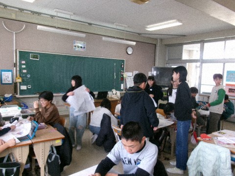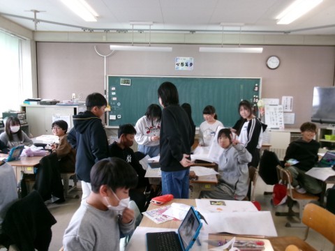 作品袋にイラストや絵を描いていました。6年生で制作した絵などを持ち帰ります。作品とともに,袋も思い出に残るものになると思います!