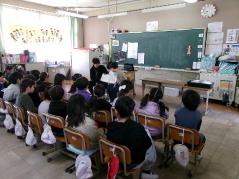 今日は,朝の時間に図書委員会の児童による「読み聞かせ」を行いました。1~3年生までの教室に行っての読み聞かせです。