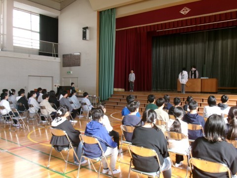 今日も卒業式の練習をしていました。内容は,卒業証書渡しの流れや動きです。前回の練習の反省をもとに,みんな真剣に取り組んでいました。