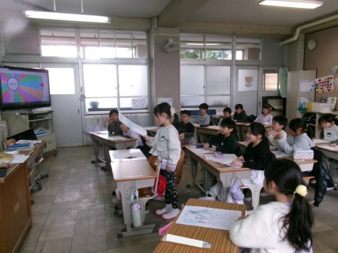 今日は,前に書いていた絵日記風の作文を,みんなの前で発表していました。ルーレットで順番が決まるので,みんなどきどきしながらも頑張って発表することができました。
