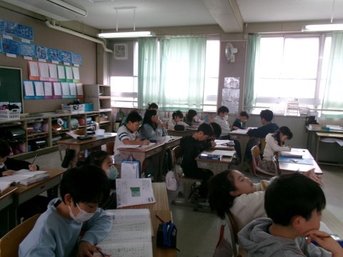 どちらのクラスも,算数の復習をしていました。1組は答え合わせを,2組は問題に取り組んでいます。しっかり復習して,2年生の内容で分からない所は必ず,先生や友だち,家の方などに聞いて確かめておきましょう!