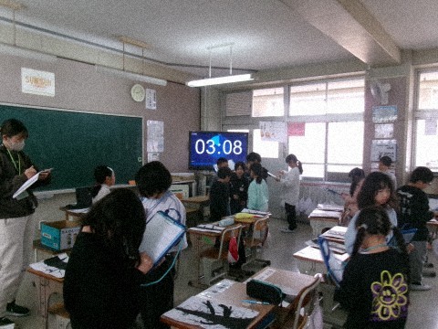 友だちの「モチモチの木」の絵を見て,どこが良かったか,どこを真似したいかなどの感想を書いていました。みんな一生懸命鑑賞して,友だちの絵の良さを見つけていました。