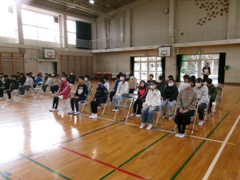今日は卒業式の予行練習でした。5年生の子どもたちも保護者席に座り,6年生の様子を見学しました。