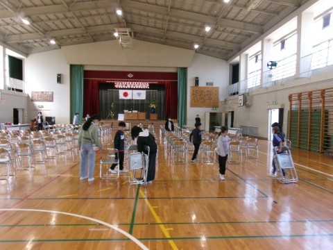 いよいよ明日は卒業式です。5年生が,卒業生のために会場準備を頑張りました。誰かが見ていなくても,自分の担当を一生懸命掃除したりきれいに飾ったりする姿に,4月から