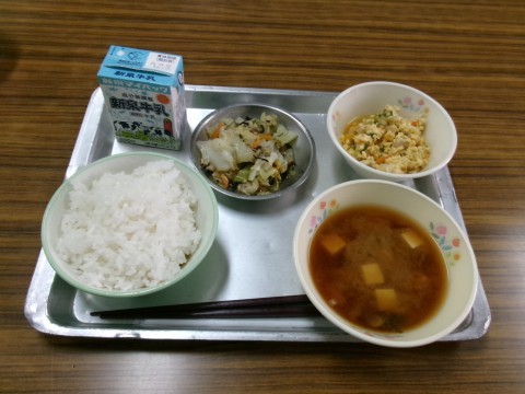今日のメニューは,ごはん,赤だし,親子丼,和風サラダでした。