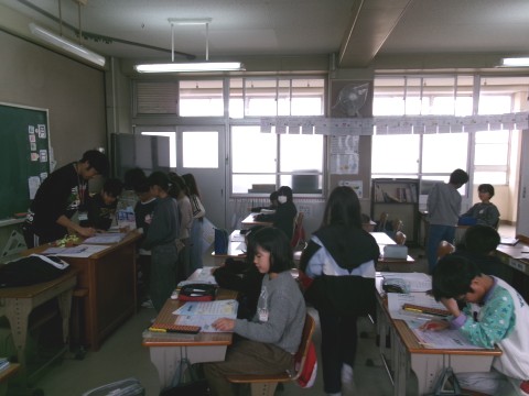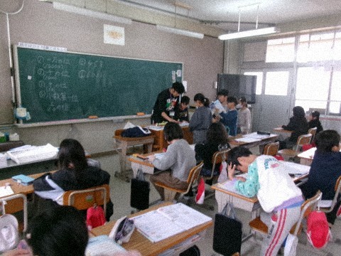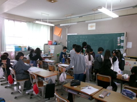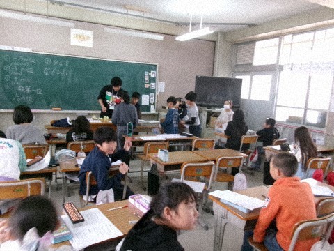 算数ドリルの直しをしていました。今日が最後の算数で,直しがある部分を先生にチェックしてもらっています。全部やり切った子は,達成感のある顔で自分の席に座っていました!