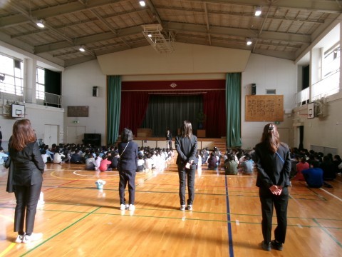 その後,生徒指導担当の先生から「春休みの生活について」の話がありました。みんな真剣に聴くことができていました。