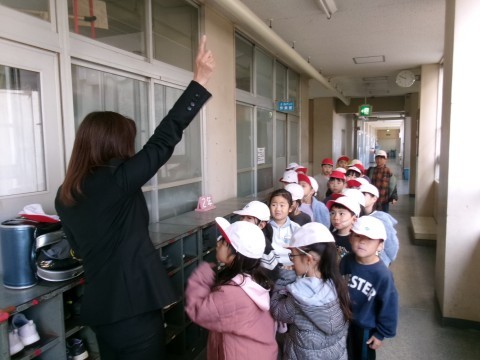 4月の始業式に学校に来た時に,クラス分けの紙が掲示される場所と,その後自分の名前を見つけたらどうしたらよいか(2年生の教室に上がって,自分のクラスの中に入って待つ)の説明をしていました。新1年生が入学して,お兄さん,お姉さんになるのが楽しみですね♪