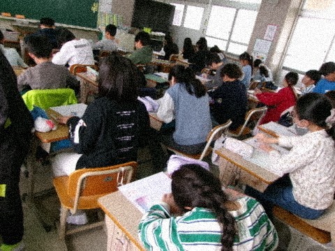 今日は,自分の名前であいうえお作文を作って自己紹介をしました。