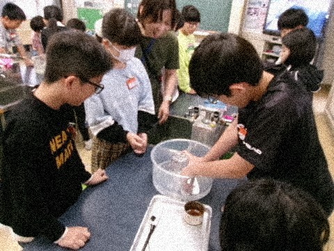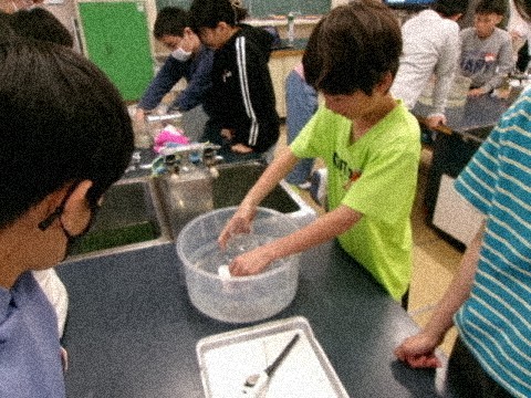 今日は「気体による燃え方のちがい」の学習で,酸素をビンの中に集めていました。