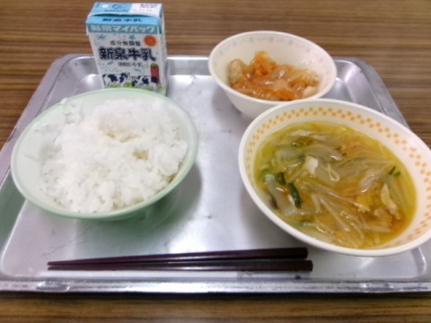 今日のメニューは,ごはん,牛乳,はるさめスープ,とりの唐あげ野菜あんかけでした。