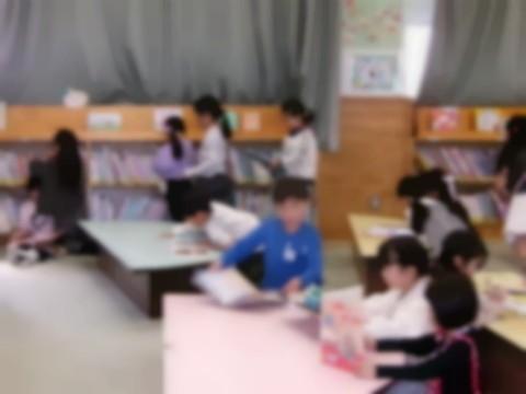 図書室でのルールを聞いた後,たくさんの本の中から自分の読みたい本を探しました。