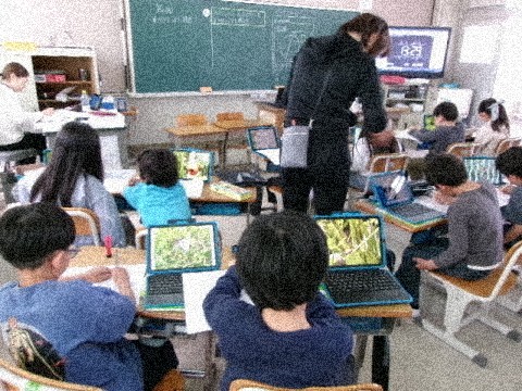 前回,校庭で見つけた生き物を写真に撮ったので,それをもとに観察カードに記録していきます。