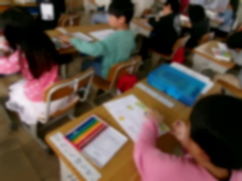 早くできた子は挿絵に色塗りをして静かに待っていました。