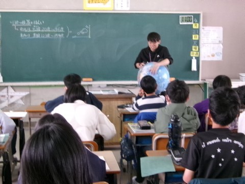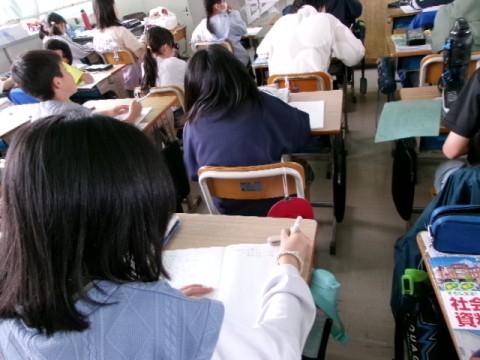 今日は地図や地球儀を使って,世界から見た日本についてノートにまとめていました。