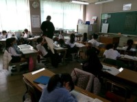 準備運動をしているところです。「脚をしっかり伸ばして。」と担任が見本を見せながら指示しています。子どもたちは,一生懸命真似をしようとしており,とても微笑ましい様子でした。