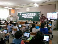 新出漢字の練習をしていました。みんな集中して,ていねいに書こうとしています。練習が終わったら,手を挙げて先生に確認してもらいます。