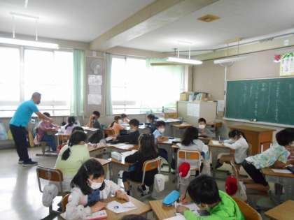 国語では今,自分が経験したり考えたりしたことを友だちに伝える方法を学習していますが,今日は全体で発表する前にグループで交流していました。