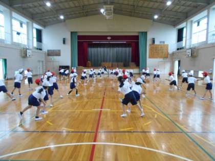 体育大会のダンスの練習をしている様子です。音楽に合わせて一生懸命踊っていました。本番が楽しみです。