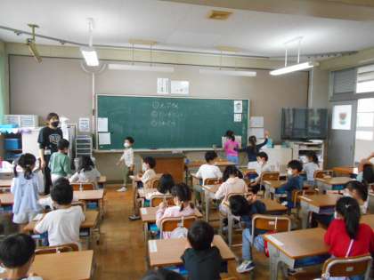 帰りの会の様子です。まず,自分の名札を順番に前に持っていき,ランドセルに荷物を入れていきます。きちんと順番に,名札を前に持っていくことができていました。