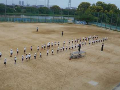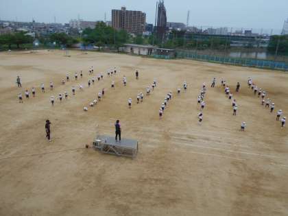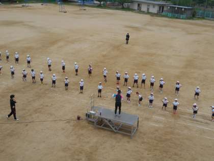 体育大会のダンスの練習をしているところです。先週は雨が多かったので,久しぶりに外で練習をすることができました。隊形移動などは運動場でないとできないので,しっかり確認していました。
