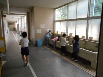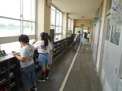掃除時間の様子です。それぞれが担当の場所で一生懸命掃除しています。