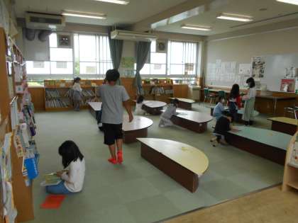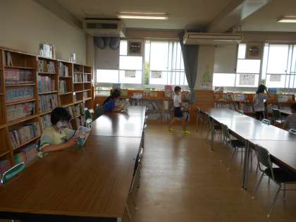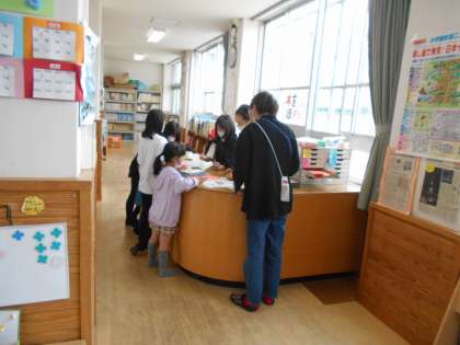 昼休憩での図書室の様子です。読書したい子や本を借りたい子が,昼休憩に図書室に来ています。