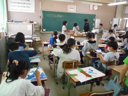 「エリック・カールの世界を描こう」というテーマで絵を制作しています。みんな,自分なりに納得できるような素敵な作品を作ることができていました。